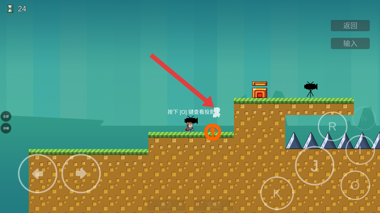 3、遇到更高的地形障碍时,需要按照提示按下O键进行查看投影,利用投影来规划后续的路径。