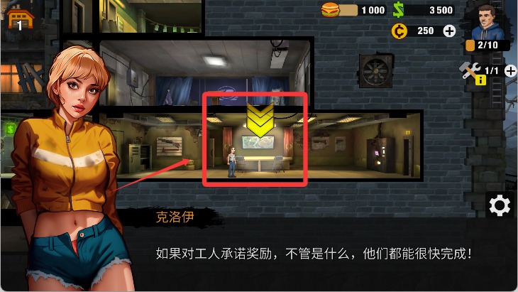 2、根据指引来到基地,对工人承诺奖励即可指挥他们。