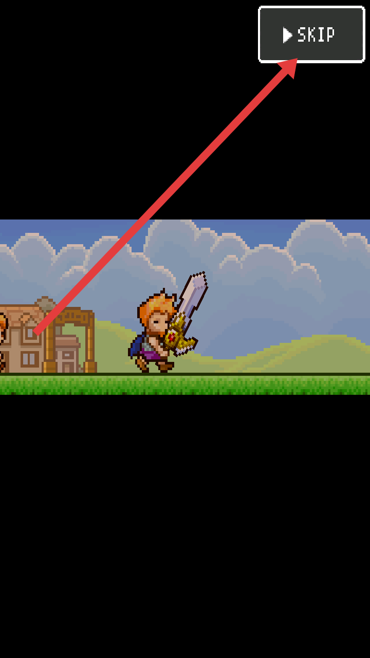 1、进入锤子勇者的游戏后,如果不想看剧情可以点击右上角SKIP的按钮,跳过开场动画进行下一步。