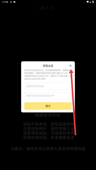 2、在遇到实名认证界面,若不想认证,可以点击关闭按钮,若想继续则填写信息提交。