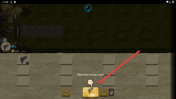 3、可以花费100金币,点击购买枪械按钮,获得新武器,提升自己战斗能力,来应对更强敌人。