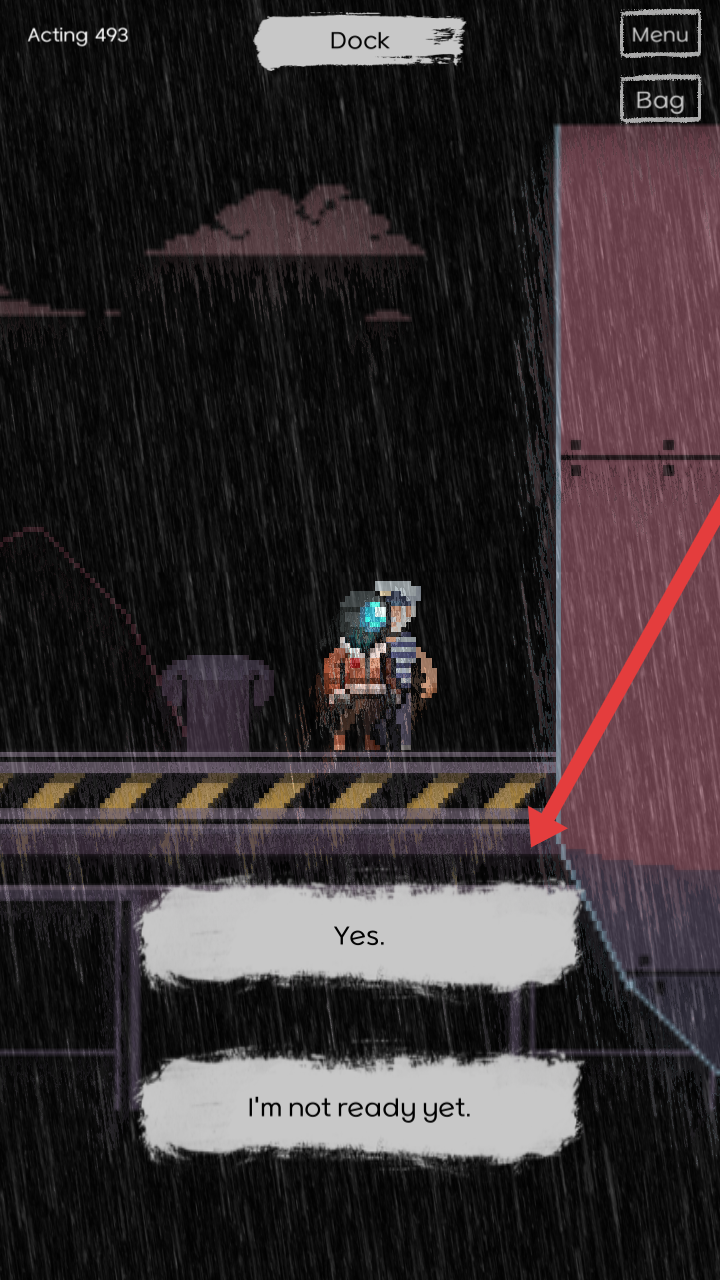 1、进入冥河的游戏后,在码头场景中,需要与NPC进行对话,然后点击Yes的选项,确认准备就绪。
