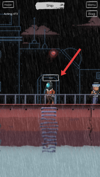 2、操控角色到达船只处,与其他的船员对话完后,点击角色上方的Go标识,进入船只损坏的地方。