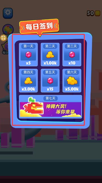 2、进入游戏后,我们可以领取签到奖励获得道具。