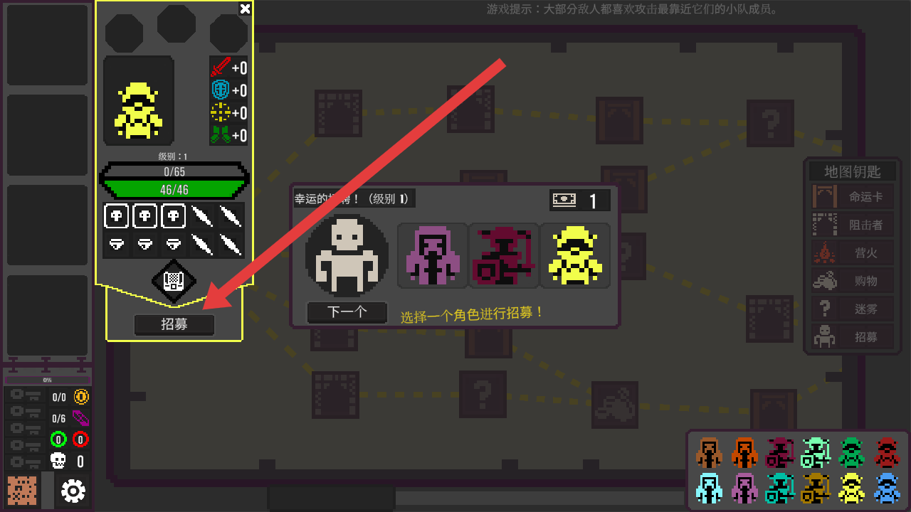 1、团队动态组建:通过招募票招募新党员,每轮含不同角色,需从敌人处获解命运卡或商店购买资格,党员战亡后需重新招募,让团队构成随进程灵活调整。