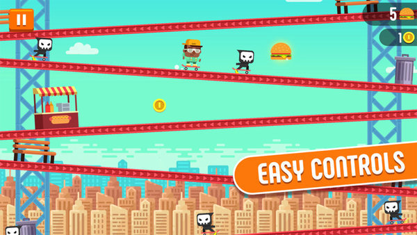 - 滑板滑行可收集汉堡包与金币,追逐强盗,与他人竞技比拼速度,胜出者能积累声望还能升级房间,用独家装饰打造个性空间,朝着世界高排名奋进赛道遍布道具,