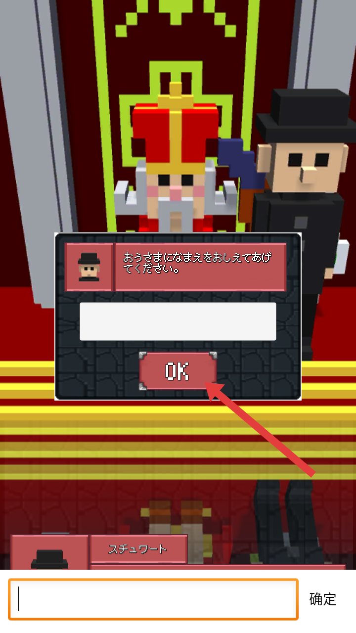 2、在弹出的文本输入界面,按提示填写角色名称,完成后点击OK按钮,确认后继续游戏流程。