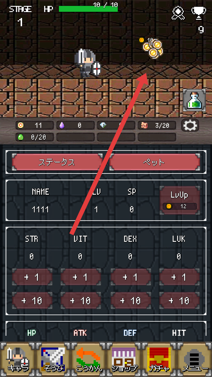 1、战斗辅助管理:战斗全程自主进行,仅需要在门卫体力不支时喂药,再根据需求分配属性点升级,通过简单辅助确保冒险持续推进。