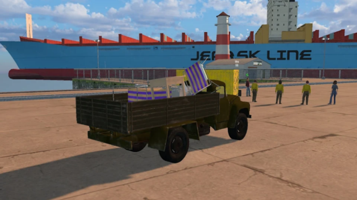 1、进入游戏后,驾驶卡车在开放世界行驶,抵达首个仓储拍卖点,观察现场情况,准备参与竞拍,开启拍卖生涯第一步。