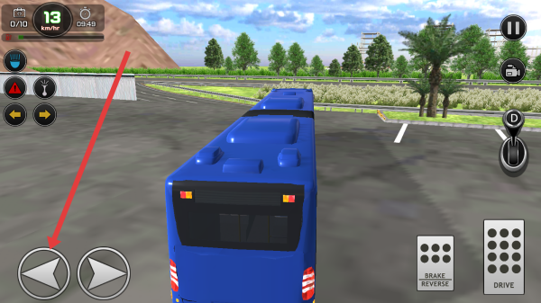 3、驾驶场景中,观察箭头指示,通过点击左侧方向按键,操控巴士转向,平稳行驶完成驾驶关卡。