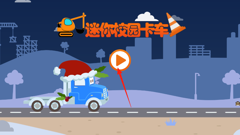 1、打开游戏,进入到主界面迷你校园卡车点击播放按钮箭头指向,进入游戏选择界面。