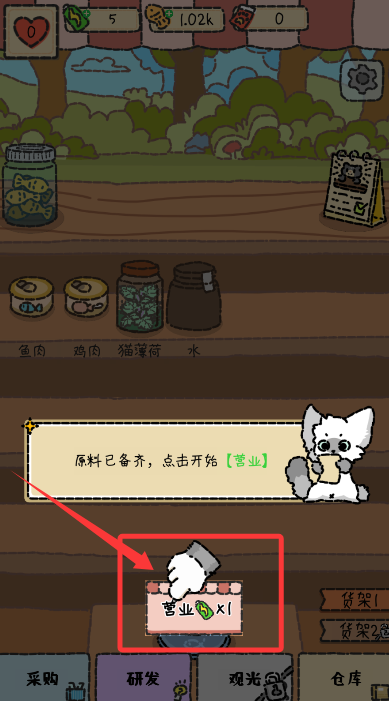 3、材料准备完毕后,点击“营业”按钮启动店铺经营流程。