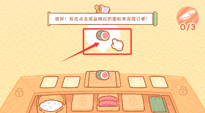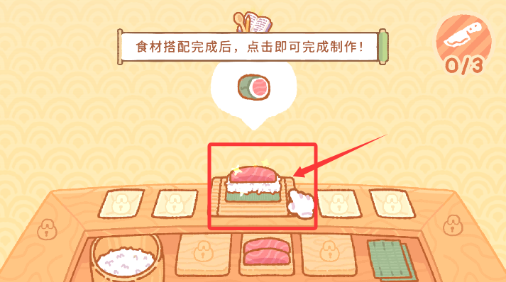 1、萌趣画风与专业料理融合,将寿司制作工艺转化为轻松愉快的体验,从捏制醋饭到切割生鱼片,都充满可爱动画效果。