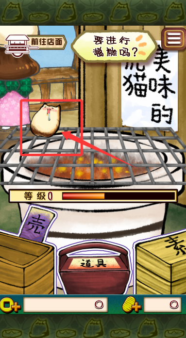 4、烤好后,出现猫咪询问是否捣糕,点击对应猫咪完成互动。