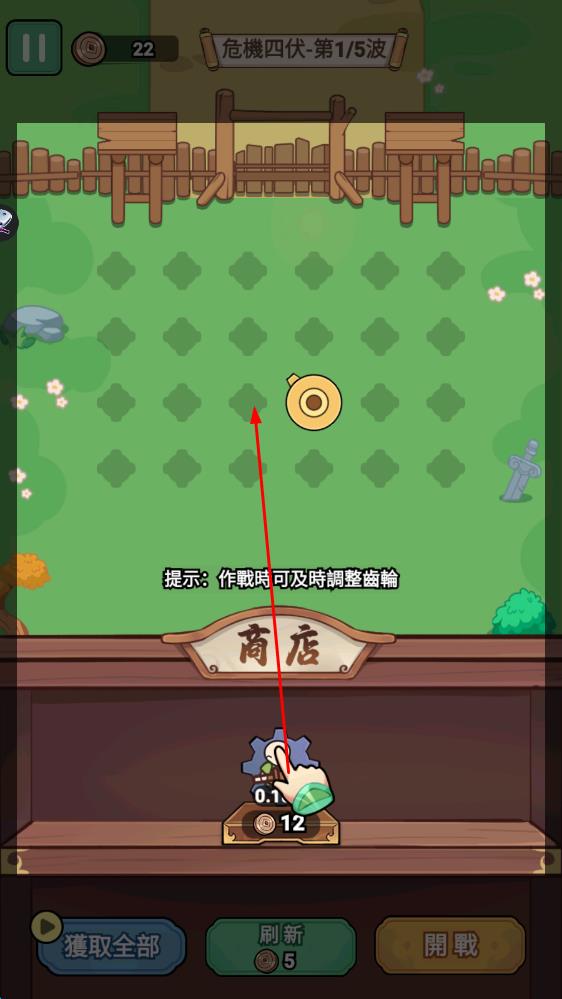 1、进入游戏后,首先在战斗准备界面中,仔细观察布局,移动齿轮进行合理放置,为士兵部署奠定基础,让士兵产出的速度变的更加快速。