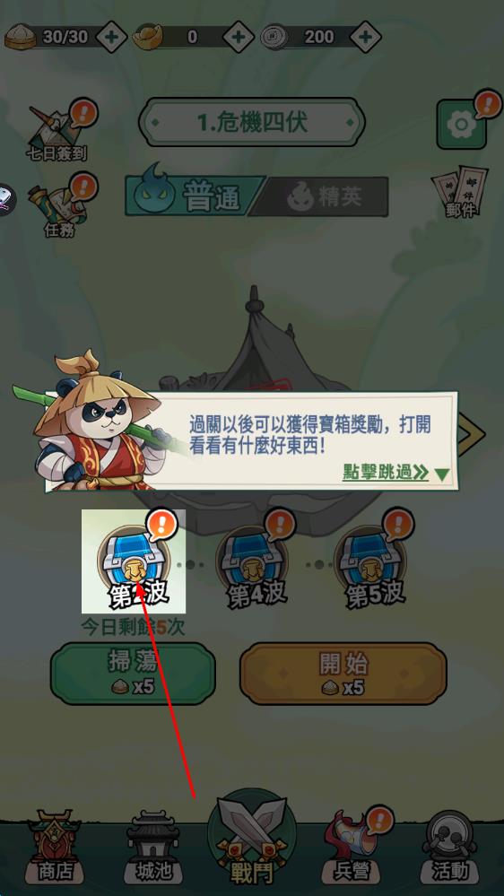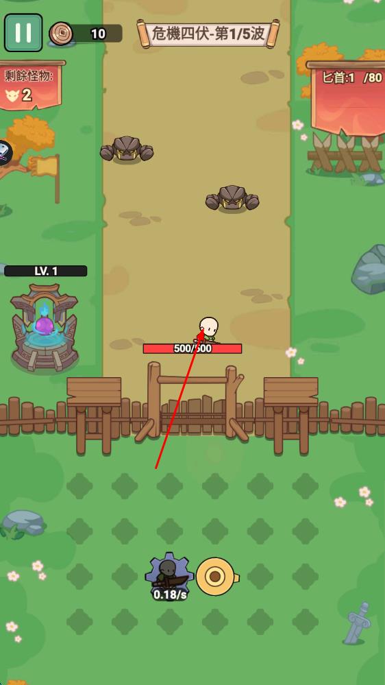 2、一切准备就绪,果断点击开战按钮,开启紧张刺激的战斗,见证士兵们在战场上抵御敌人的进攻,保护好城门不被敌人破坏,击败敌人获得金币购买更多齿轮。
