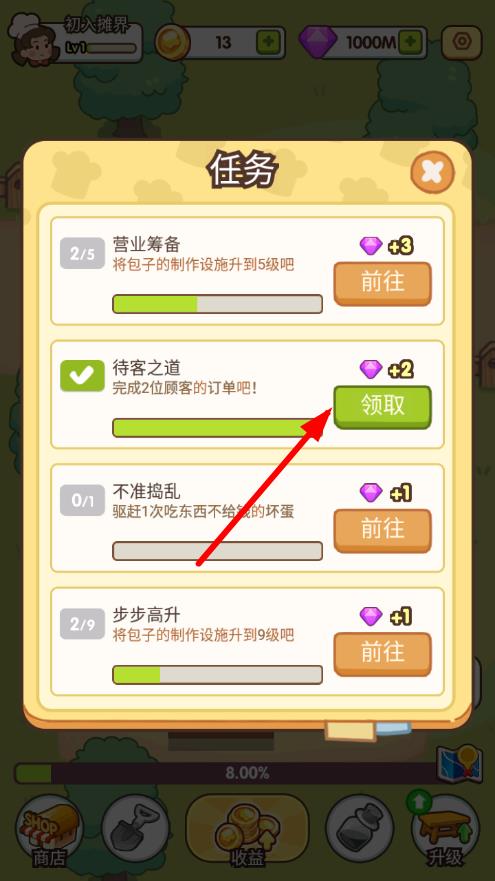 3、完成关卡目标获得丰厚收益,解锁新的食材和经营道具,扩大摊位规模,在与其他玩家的竞争中占据优势。