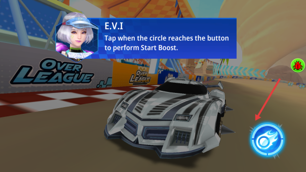 2、比赛开局,等圆圈到右侧按钮时点击,触发Start Boost加速,利用武器干扰对手。