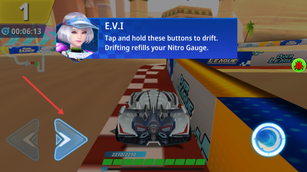 3、过弯道时,长按方向键漂移,漂移可充能Nitro Gauge,合理使用氮气加速,争取领先名次。