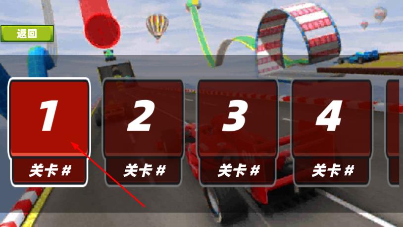 1、在关卡选择界面,点击关卡 1,进入对应赛道挑战,完成挑战解锁下一关。