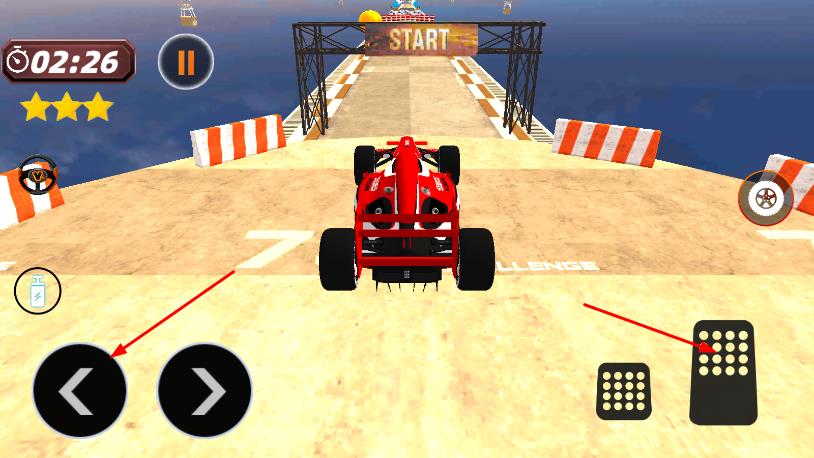 2、驾驶赛车时,用左右箭头按钮控制方向,右侧按钮控制加速与退后等操作。