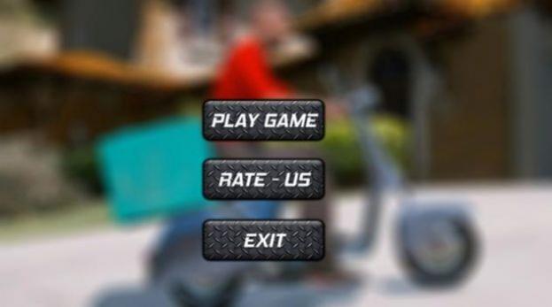 1、主界面点击PLAY按钮,进入披萨配送游戏场景,操控骑摩托的配送员,准备完成订单任务。