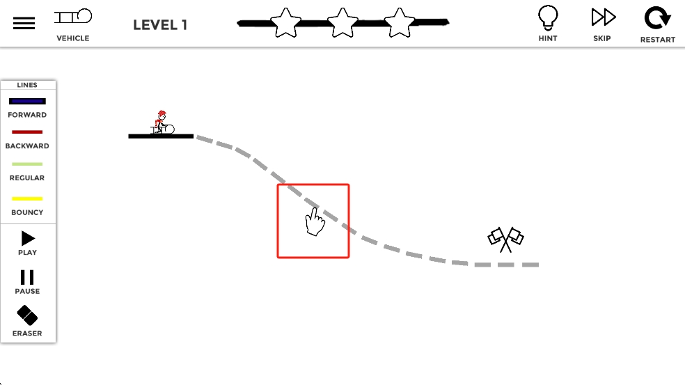 1、绘制线条赛车:在关卡起点的绘画区域,用手指画出任意线条当作赛车,线条的形状决定赛车的行驶路径,画完后松开手指,赛车便会自动向前行驶。