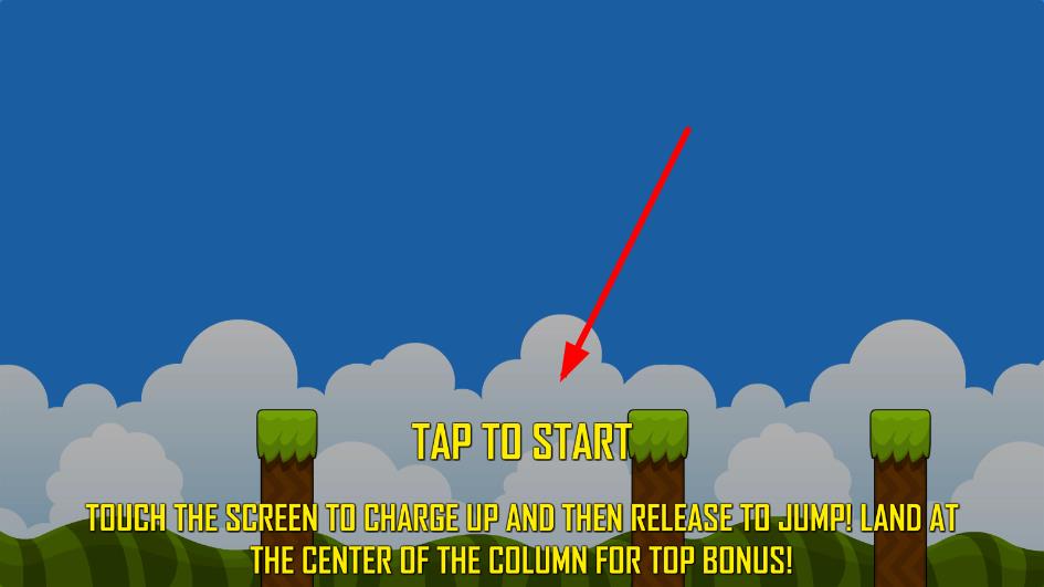 1、点击 “TAP TO START”开始,长按屏幕蓄力,松开手指让几何体小人跳跃,尝试落在相邻草台,熟悉跳跃蓄力与落点控制基础操作。