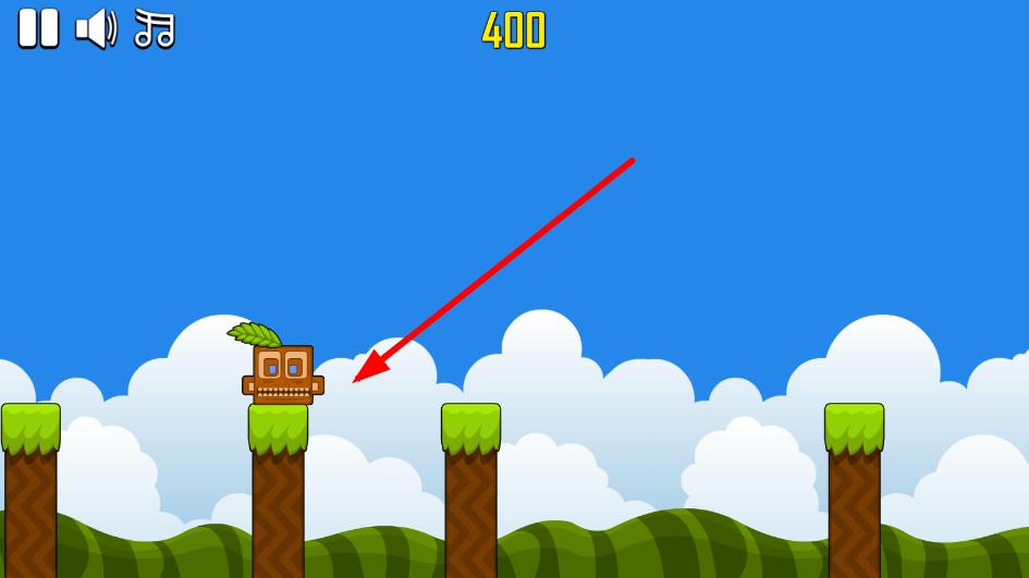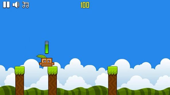 2、闯关时控制小人在草台间跳跃,借助踩踏草台持续前进,注意草台间距,通过调整长按蓄力时长改变跳跃距离,收集路上积分奖励道具。
