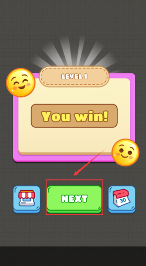 4、点击绿色下一关,完成第一关进入新挑战。