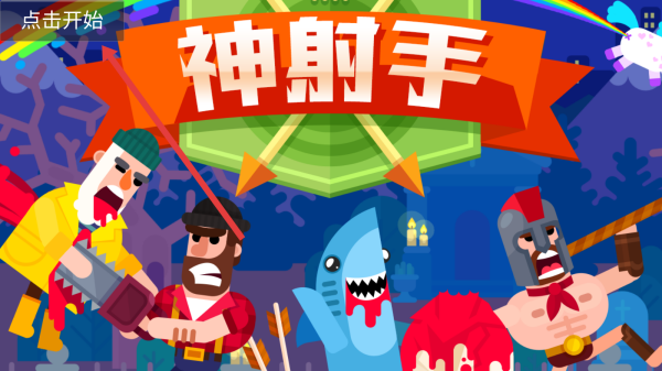 1、触碰游戏启动界面左上角的点击开始按钮,随即进入神射手世界,准备开启射箭对战之旅。