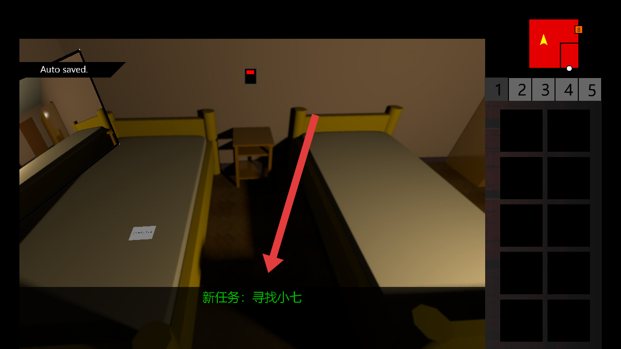 2、完成前置剧情,在房间场景接取新任务寻找小七,需在场景内探索,找寻目标小七的踪迹。