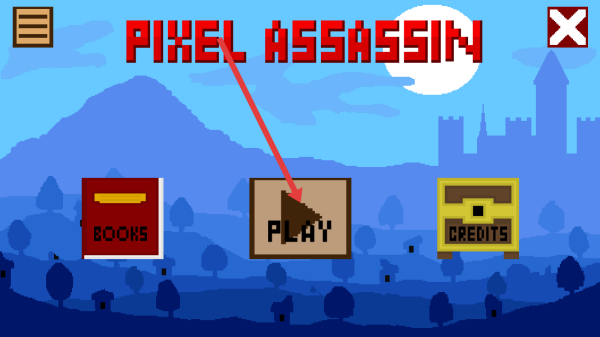 1、进入游戏主界面,点击PLAY按钮,开启像素刺客的冒险之旅,体验核心玩法,观察页面。