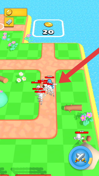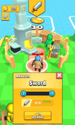 2、下方有武器剑的按钮,呈现玩家在过程中遭遇了敌人的攻击,需要完成金币目标的战斗场景。