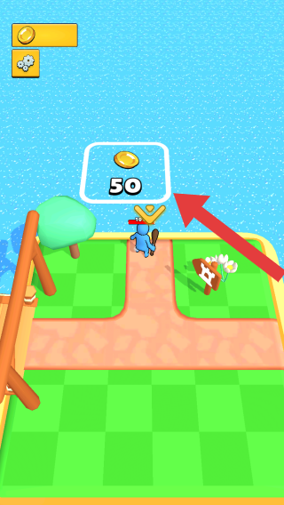 3、需要采集不同的物品形成金币,再根据提示建造新场景,呈现需采集50金币的任务指引与场景信息。