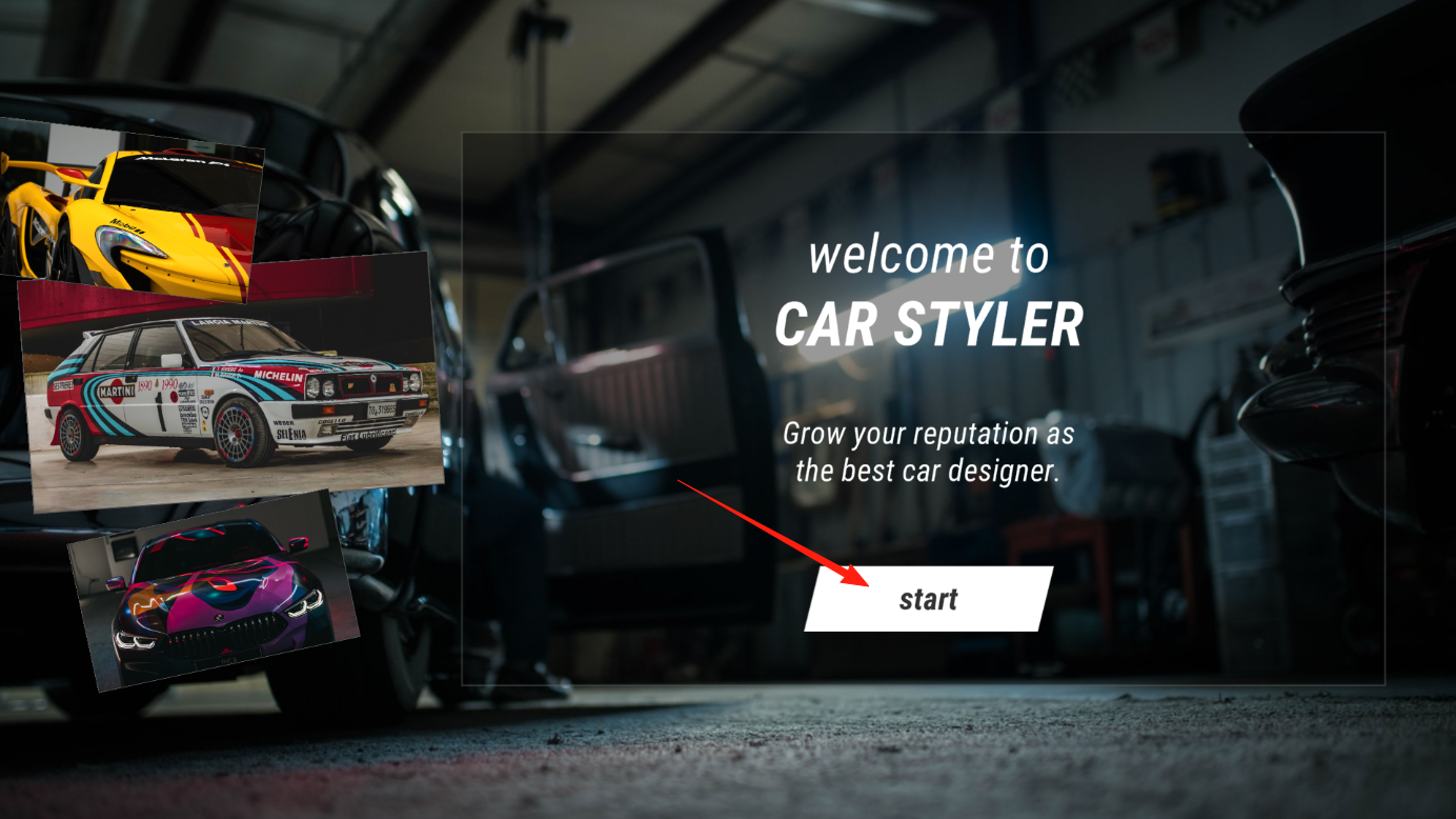 1、进入CAR STYLER界面,一堆超酷赛车海报在眼前。点击start就能开启汽车设计之旅,从车身涂装到轮毂样式自由发挥创意,把普通汽车改成梦想中的样子。