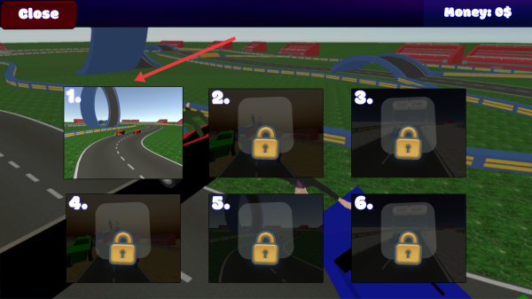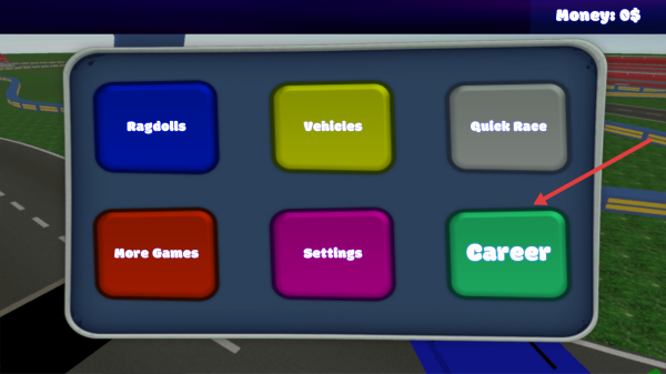 1、主界面点击绿色Career,进入生涯模式关卡选择,解锁第1关弯道赛道,开启赛车挑战。
