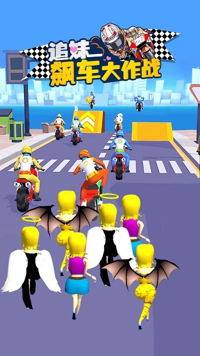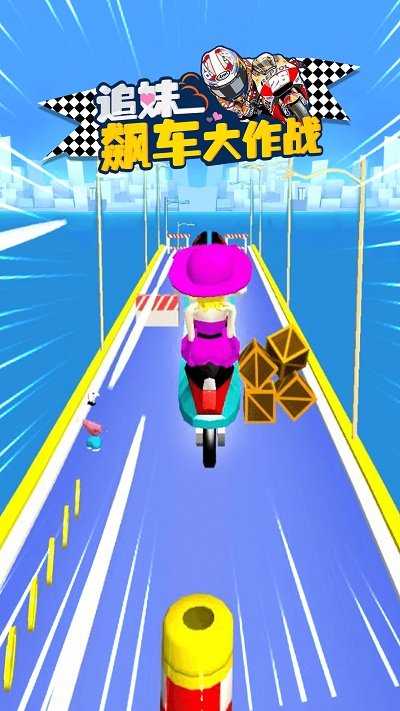 - 追妹飙车大作战是一款玩法休闲的赛车闯关佳作,玩家将驾驶小摩托开启追妹之旅,途中需越过众多阻碍,成功追到妹子,游戏难度适中且富有操作感,造型奇特的