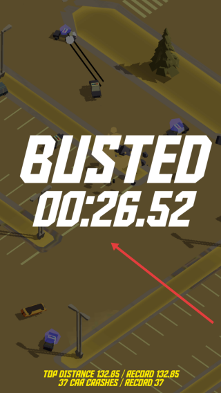 3、若被拦截显示BUSTED,记录存活时间、距离等数据,重新开始挑战刷更高纪录。