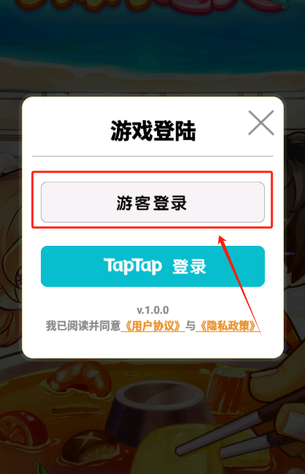 2、选择红色框框的游客登录。