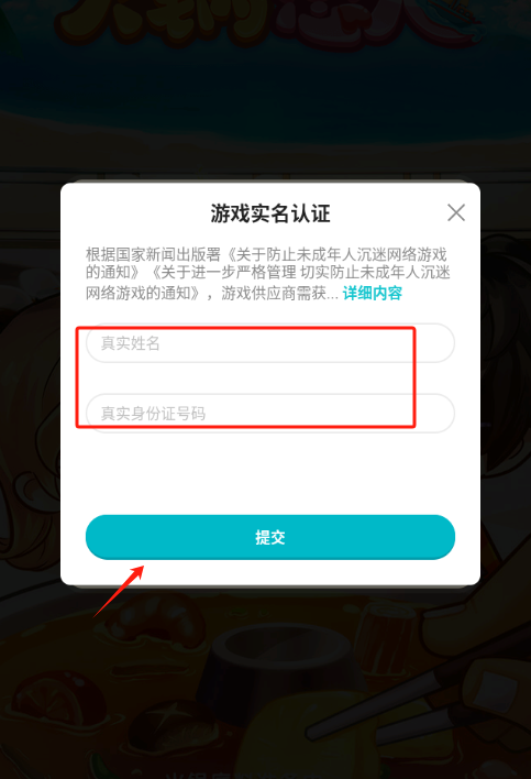 3、游戏要实名认证,填写真实姓名和身份证。
