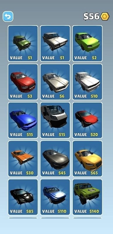 3、获取到的金钱购买新的汽车类型,新的汽车类型经过标志之后会获得比旧的汽车类型高的金钱数,获得越多的钱购买的汽车类型获得的钱也会更高。