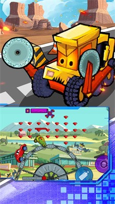 2、卡通渲染技术呈现独特的视觉风格,夸张的车辆造型搭配鲜艳的场景色彩。特技动作时的特效表现尤为突出,空中翻转等动作配有华丽的粒子效果。