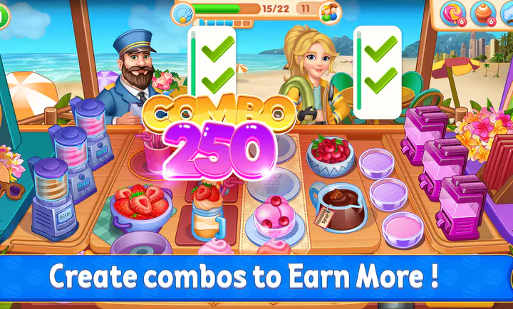 3、完成任务赢取奖励,用奖励购买道具助力烹饪,逐步解锁更多菜品与场景,让烹饪经营之路更丰富精彩。