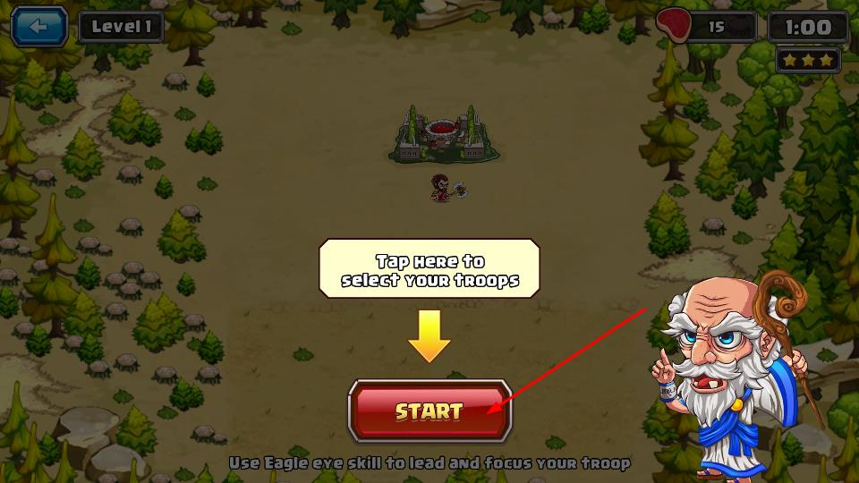 1、进入Level 1游戏界面,点击START按钮,按提示选择部队,玩家既可开启战斗流程。