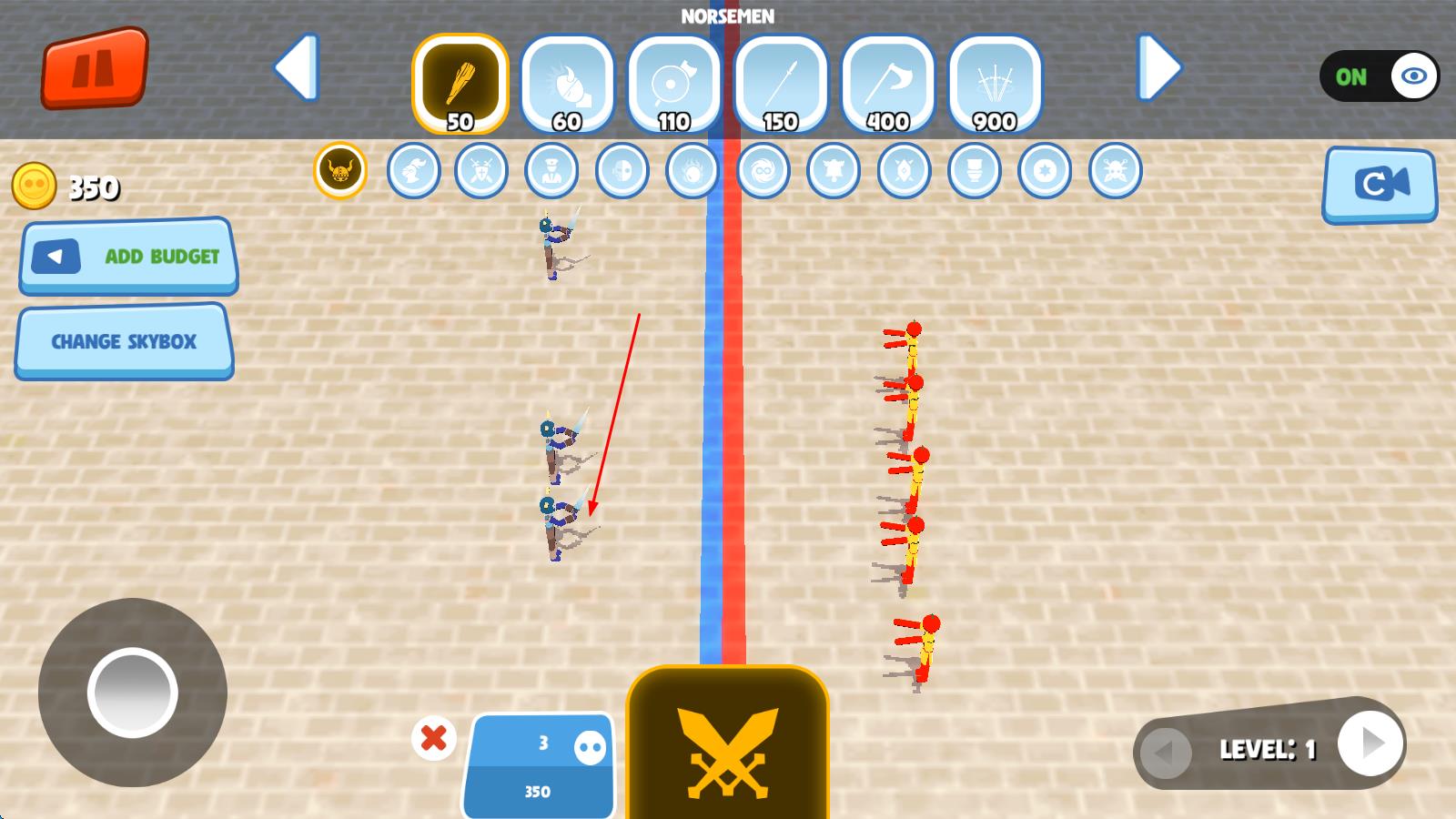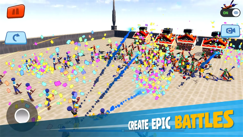 2、游戏过程中,在沙盒模式里尝试不同单位组合,测试新策略,观察物理引擎下战士的动作变化,逐步摸索获胜技巧。