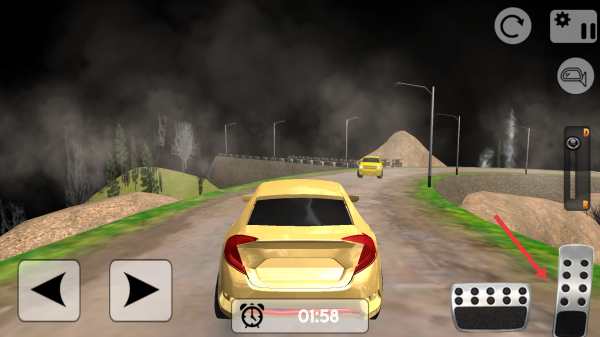 3、利用左侧左右箭头按钮控制黄色轿车转向在山路弯道处及时调整方向避障。