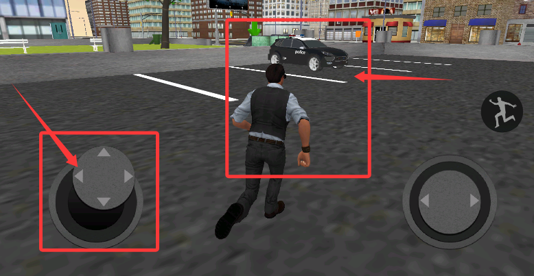 3、通过左侧虚拟摇杆移动角色,使其接近巡逻车辆触发驾驶指令。
