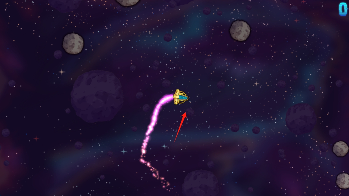 2、游戏中操控飞船,灵活移动,躲避太空陨石,延长飞行距离,挑战更高分数,点击拖动人物。