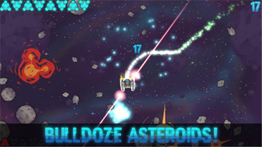 1、飞船操控射击:通过点击屏幕控制飞船运动,躲避障碍物的同时,用弹幕射击消灭前方敌人,这是核心的游戏操作方式。
